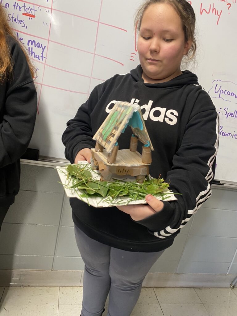 Administrators observed some of the students in class as they worked on the projects. The students were able to answer questions about why the regions had different clothing, food, homes, and other artifacts. They were able to explain the impact the geography had on the adaptations the tribes had to make to live there.
