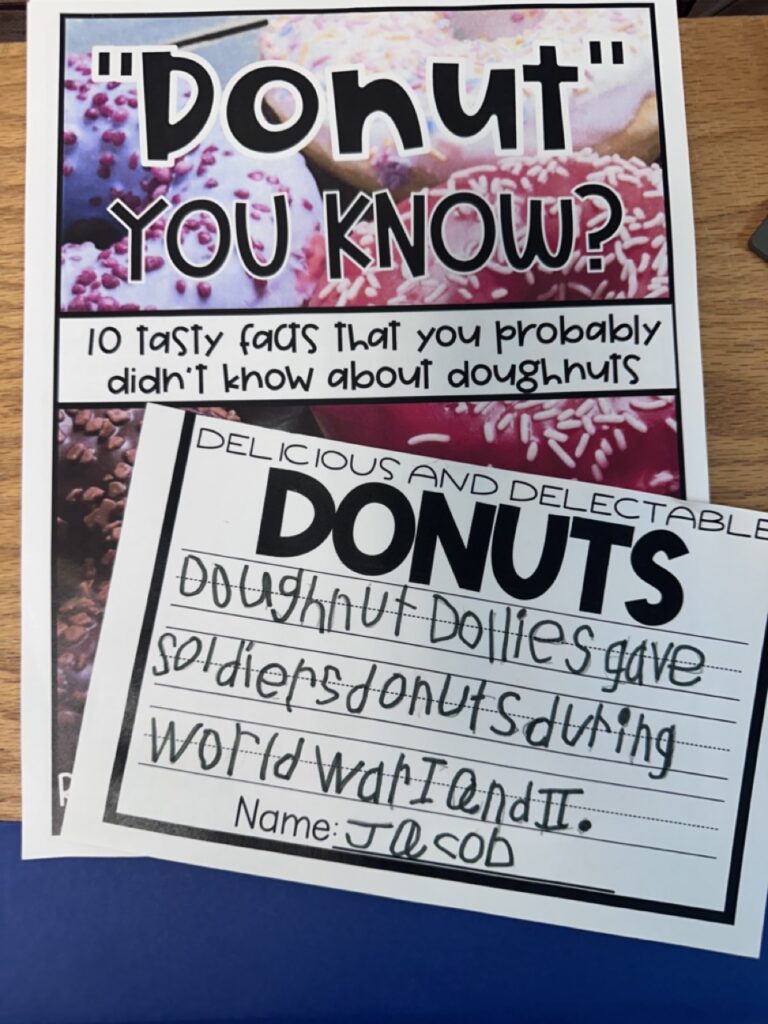 This lesson also connected to our learning about America’s upcoming 250th anniversary. As we look toward celebrating the United States Semiquincentennial in 2026, students are discovering how everyday things—like doughnuts—can tell stories about courage, community, and innovation throughout our nation’s history. My class loved seeing how even a sweet treat can help us better understand the people and events that helped shape America!