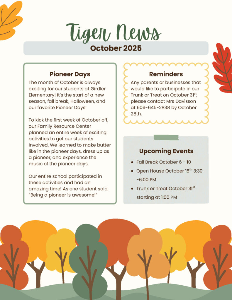 The month of October is always exciting for our students at Girdler Elementary! It’s the start of a new season, fall break, Halloween, and our favorite Pioneer Days!