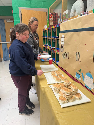 After studying the events that led to the American Revolution, students participated in a hands-on learning experience that connected classroom instruction to colonial life. Students made homemade butter, enjoyed biscuits with fresh butter, and sampled “British East India Fine Tea” while discussing the significance of tea and taxation in colonial protests.