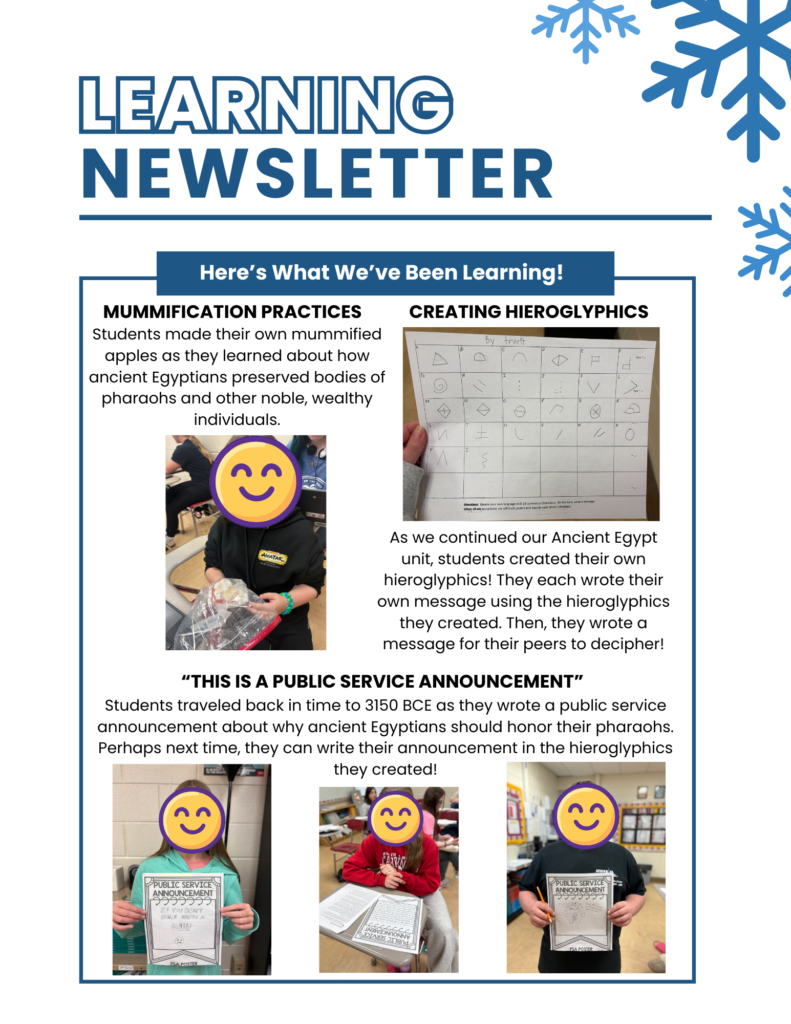 Sixth-grade students at South Laurel Middle School wrapped up their unit on Ancient Egypt. Over the past few weeks, students have learned about the GRAPES of Ancient Egypt– geography, religion, accomplishments, politics, economics, and social structure. During their studies, students participated in a hands-on activity: mummifying an apple. Each student received half an apple to coat in a mixture of baking soda and salt. This combination helped draw moisture out of the fruit, modeling how ancient civilizations preserved bodies of pharaohs. After making predictions, students observed changes in color and texture as several days passed. This activity sparked thoughtful conversations about dehydration, chemical reactions, and preservation. Students enjoyed connecting real-world history to chemistry through direct experience rather than just reading about it. Ultimately, this hands-on activity helped students to understand the importance Egyptians placed on life, the afterlife, and respect for the dead. It wasn’t just a scientific process– it was a spiritual and cultural practice rooted in the belief that preserving the body was essential for the soul’s journey in the afterlife.